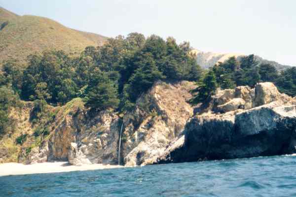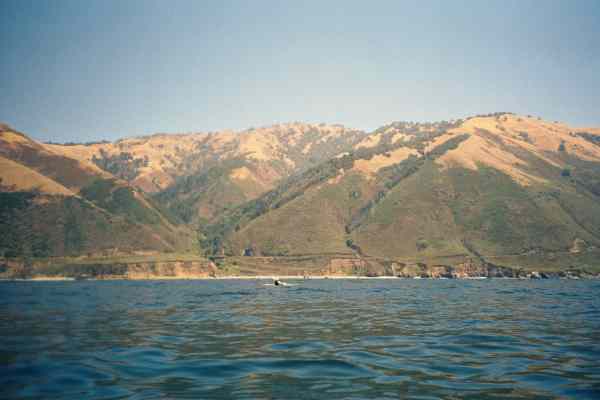 Around Gorda Point there was a large cove with a road leading down to it and I didn’t want to get that close to civilization. We looked at the last small cove before the large one and found reasonable surf crashing on a beach with a high flat berm to camp on. I went in first and had a wild surfing/broaching ride but managed to stay upright. Konstantin chose a better window and made a perfect landing.