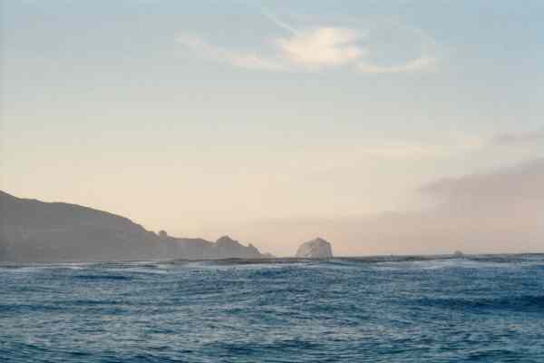 I met Konstantin outside the surf and we started south. We went inside Plaskett Rock then turned outside to go around some kelp. Cape San Martin was ahead and Konstantin turned farther from shore to go around the kelp there. I saw a clear path to get inside and took it. We started paddling farther and farther apart. Ever since I went inside of the rock of Cape Mendocino and learned later that Sid and Konstantin had gone around, it has become a joke and almost a point of honor for me to go inside the big rock that you find off many points. I wanted to go inside if there is enough water or the breakers are no too scary. Waves were rising up in an alarming way over the shallow kelp beds but not breaking. So I slipped easily behind the rock and out the other side to meet Konstantin. He chewed me out for disappearing on him without telling him where I was going.
