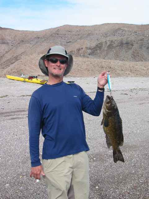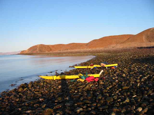 We considered passing up our planned campsite at an arroyo called La Ballenita. But according to the topographic maps there is no-place good to land until the north end of the island. Since that would make this a 30 mile day we stopped and looked for places to camp. Ballenita is not a great spot but OK, so even though it was not lunch time yet we decided to stay. I went for a hike up into the lava jumbles behind the beach and Patrick went fishing. Walking down the beach later I found another one of those nice wooden stools. I left the last one behind, perhaps I can find another one on every beach!