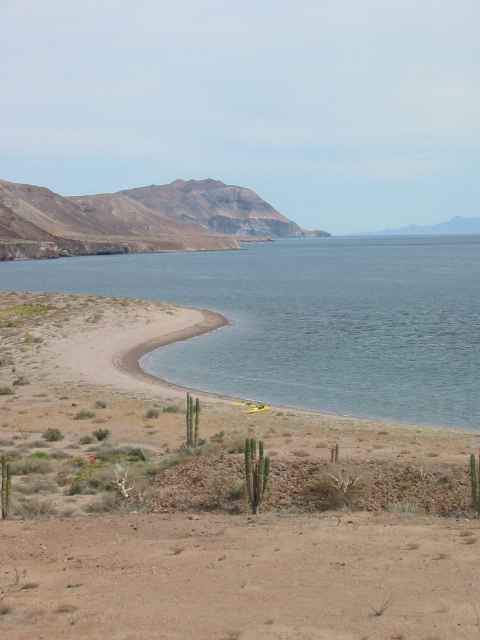 The wind finally died down in the middle of the night. In the morning we launched at 7:30 AM to beautiful water and sky. We paddled past a slot in the cliff that cast morning sunlight on a colony of sea lions on a sandy beach. They barked and moaned and croaked and made a dozen other noises, which echoed off the cliffs like in an amphitheater. A string of pelicans flew through the shaft of light. A scene too beautiful to ever attempt to catch in a photo.