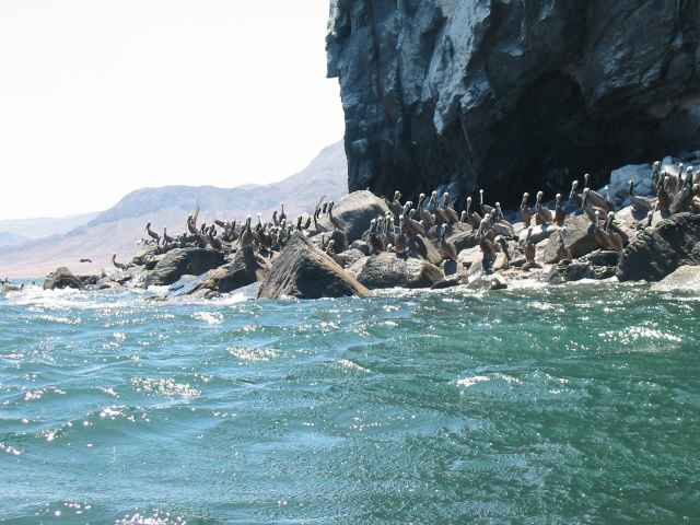 In the morning we got another weather report from the Solstice. A chance of north wind at 10 to 15 knots. Not a problem since we planned to head south. When the wind came up it helped shove us south against a mild flood tide. From a great distance away we could see the huge tilted rock named “Punta el Pulpito”, which looks a little like the Rock of Gibraltar. It seemed to take a long time for this rock to get larger and larger until it towered over our heads. This rock sticks out of the edge of an otherwise low flat section of the island. This means that there isn’t much shelter from the wind except in the foothills of the rock itself. We spent some time landing on several beaches looking for places to camp. None of them have much protection from the wind. On the desert behind one of the beaches we found a group of flat stones arranged in a triangle, signs of civilization. I wonder if Sid Taylor or Konstantin have camped in this very spot and arranged these stones for their cook-stove. This is where we camped.