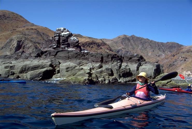 All week we had been paddling along the west shore of the sea of Cortez. 20 or more kilometers offshore there is a large island named Angel De La Guarda. We paddled past the start of this island a few days ago and it seemed to go on forever. But now for the first time from our campground we can see the other end of the 60 kilometer long Guarda island in the distance. It is a concrete measure of the progress we are making down the coast. Ahead of us we can see the volcano on Isla Coronado. This is another smaller, (only eight kilometers long) island that is near the end of our trip.