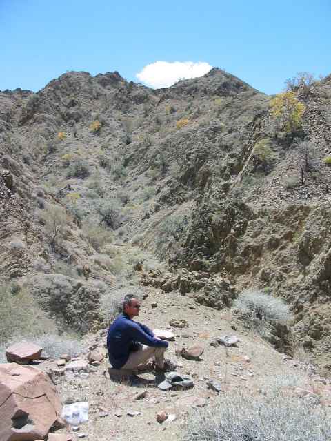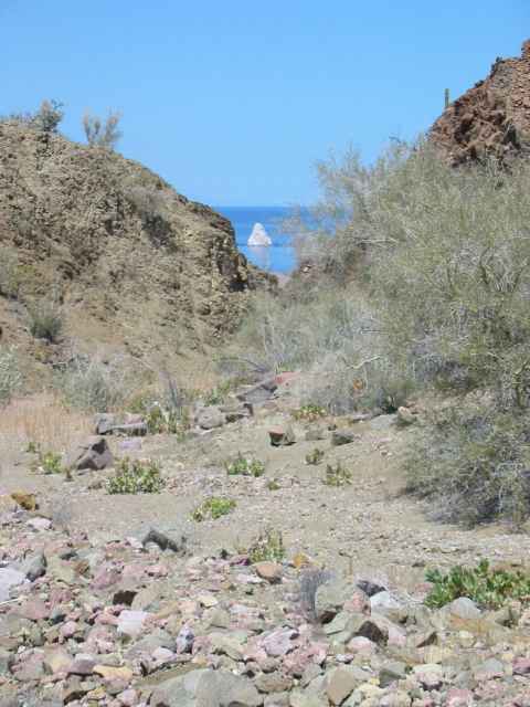 We hike up an arroyo with views back to Fang Rock.
