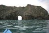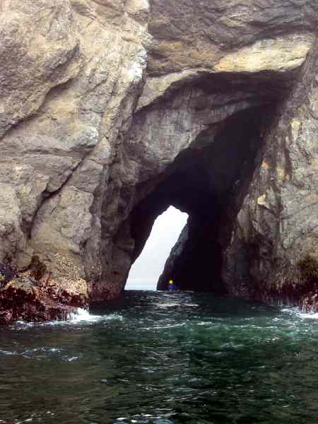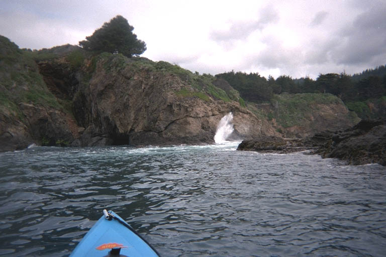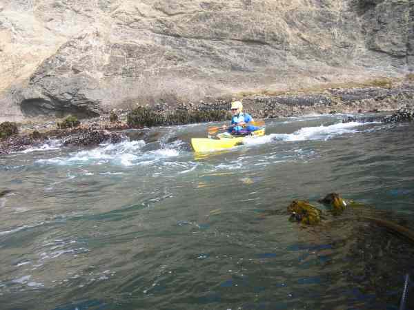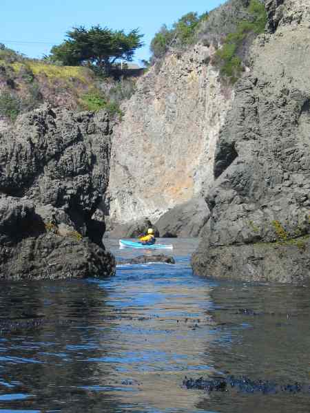 the kayak just outside the exit of the cave where I paddled out and landed.