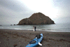 A beautiful little beach behind some rocks south of Devils Basin, the landing spot