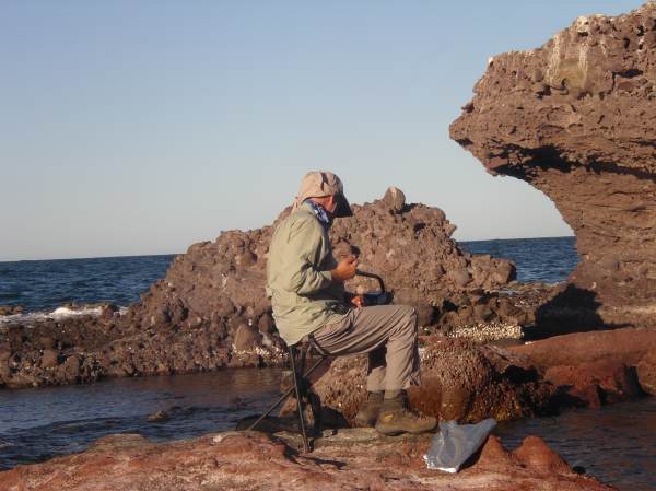 The intrepid kayaker pumping the desalinator at Punta Pilares