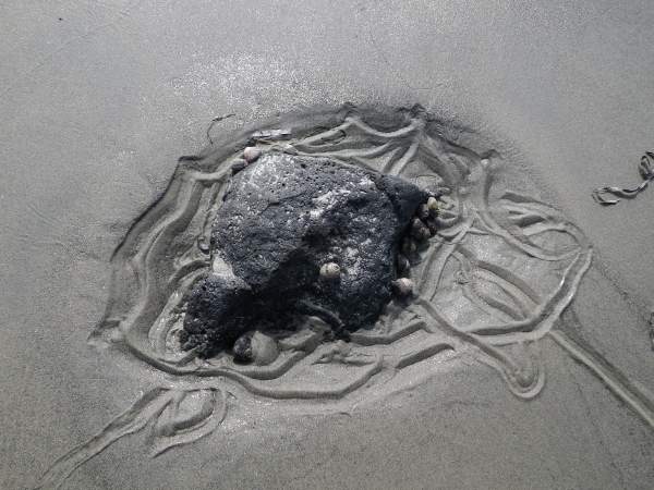 Snail tracks in the sand at the entrance to Bahia San Quintin