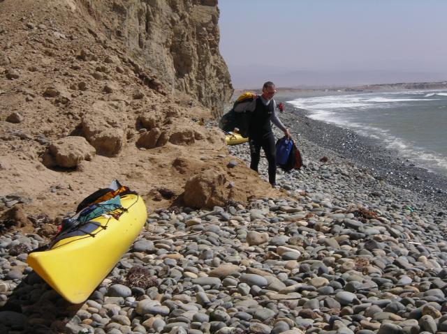 Charles Harris carries gear to a better camping spot