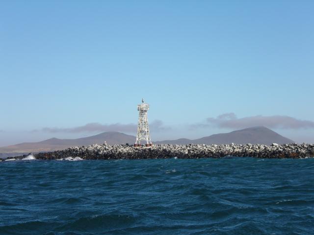 Gregg Berman approaching the natural breakwater on Isla San Martin