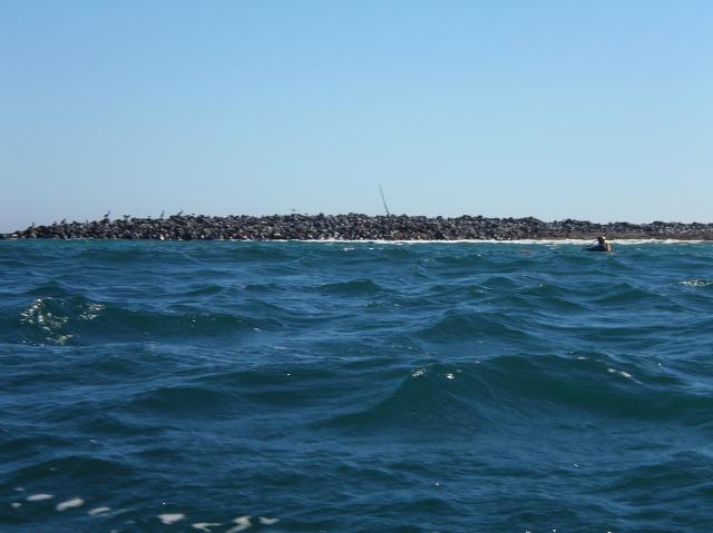 Gregg Berman approaching the natural breakwater on Isla San Martin