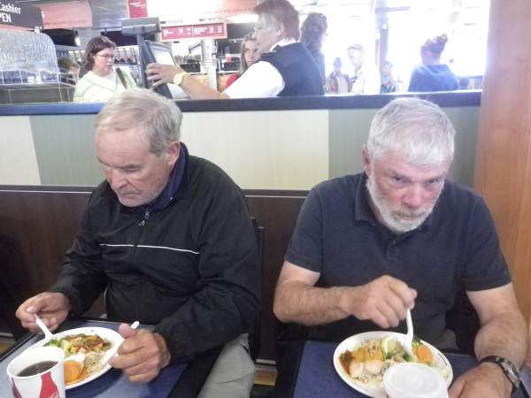 Dooner and Ken having lunch/dinner on the ferry