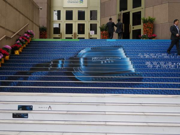 An interesting way to display an ad on a flight of stairs, Hong Kong