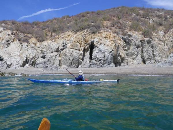 Joe Petolino paddling north along the shore of Isla Ceralvo