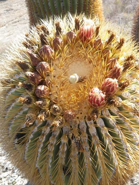 Barrel cactus blooming on Isla Cerlalvo