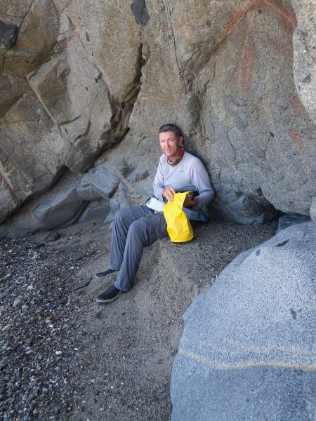 Doug Hamilton finds a good place to eat lunch out of the sun
