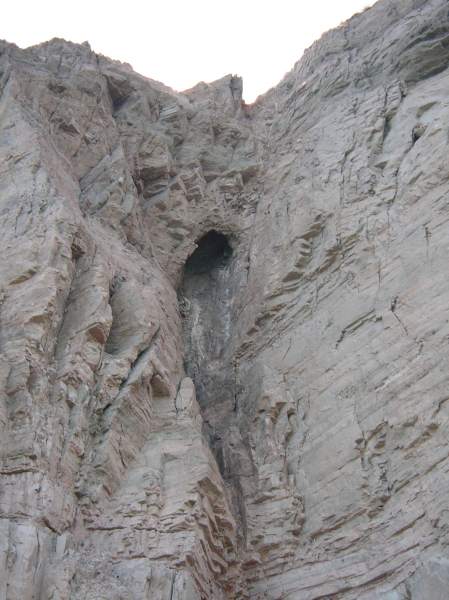 Drainhole in vertial sandstone cliff