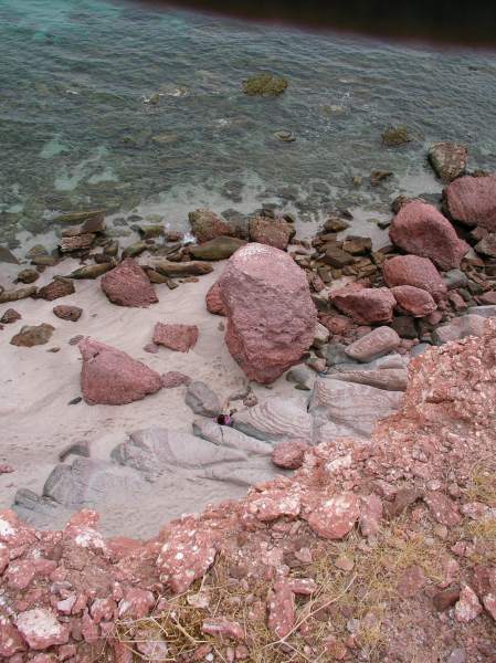 Looking down at Kate DesLauriers reading on the beach