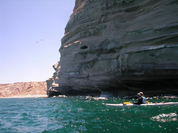 Kate DesLauriers in front of the incredible sandstone cliffs on Isla San Jose