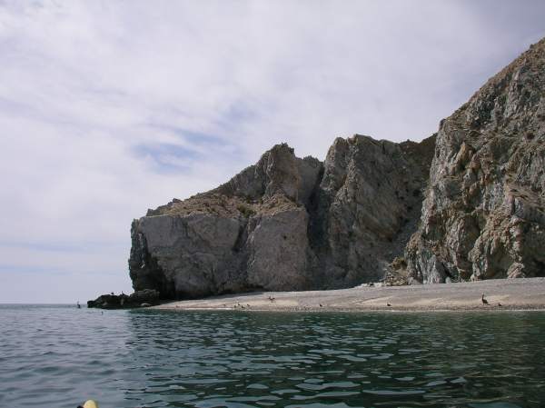 Gravel beaches below sandstone cliffs