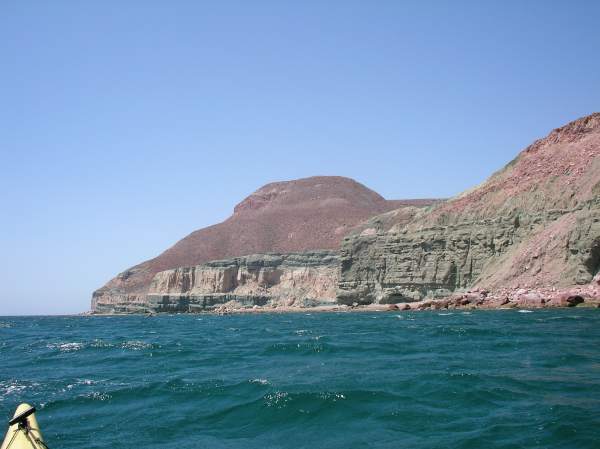 Green layers of stone in the cliffs