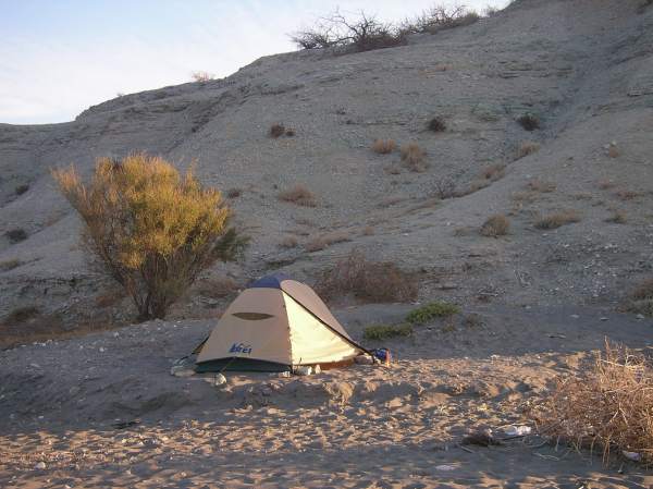 Camping behind a bluff on the Sea of Cortez