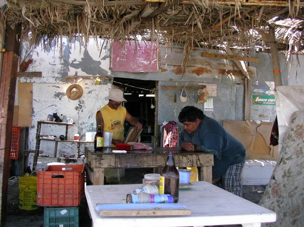 Pescaderos (pirates) cook us fish tacos