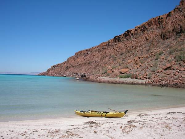 I stop for a break on a sandy beach on Isla Espiritu Santo