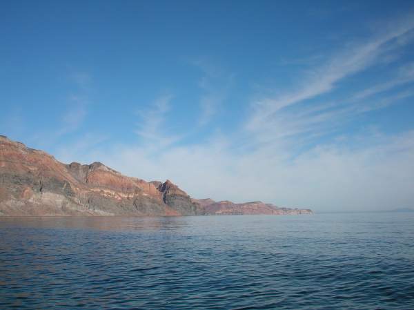 Morning light on painted cliffs on Isla Espiritu Santo