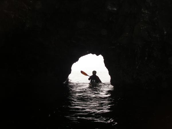 Dick Ryon going through the big arch in Cape Falcon