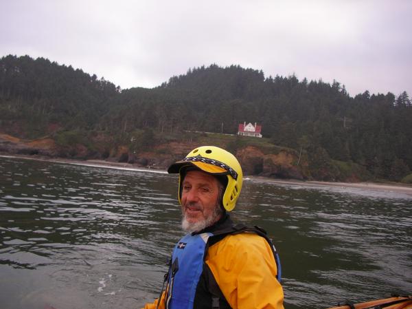 Dick Ryon in front of the Heceta Lighthouse keepers house