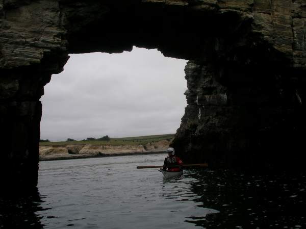Dave Littlejohn inside the arch on Sea Lion Rocks