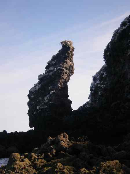 Osprey nest on spire of basalt