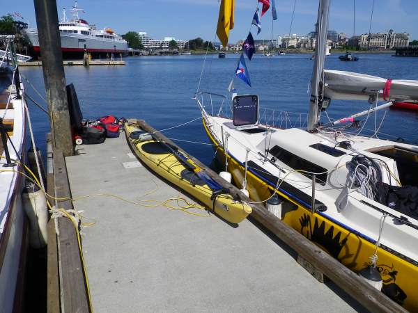 My kayak waiting on the dock for phase 2 of the race to start