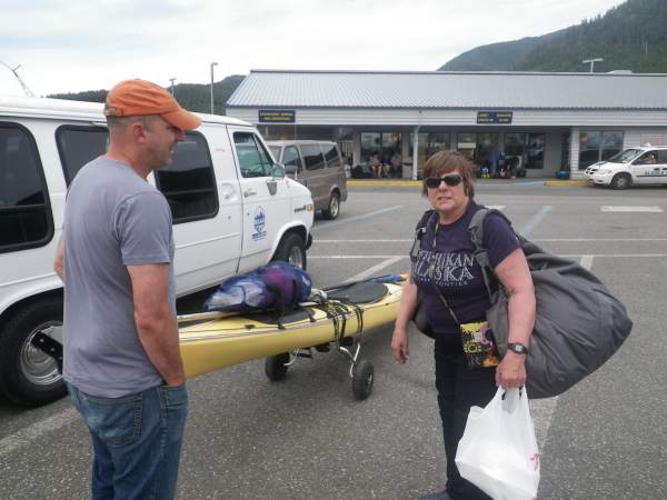Jake Beaty and Kate DesLauriers help me get the kayak ready for a ride on the Alaska Ferry