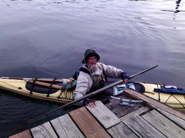 The intrepid Kayaker approaching the dock for the Race to Alaska