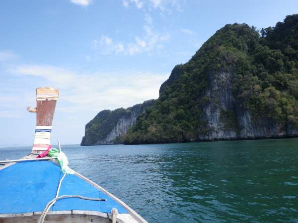 Approaching a Karsk limestone island in Pang Nga Bay, Thailand