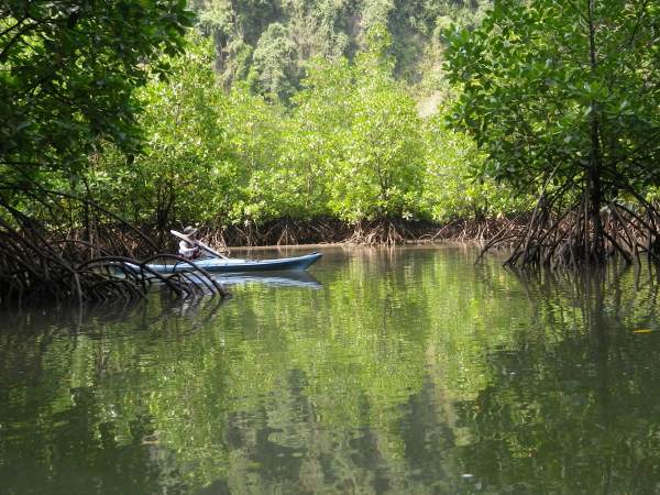 Mangroves and Mary Ann Furda in a lagoon in Pang Nga Bay, Thailand
