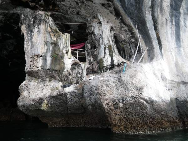 Platforms built by birds nest collectors in Pang Nga Bay, Thailand