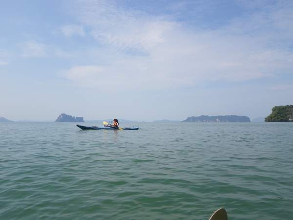 Paddling between Karsk islands in Pang Nga Bay, Thailand