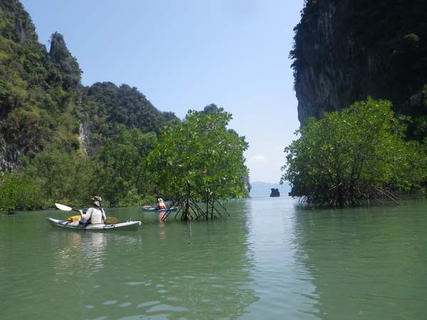Mangroves and calm water in a lagoon in Pang Nga Bay, Thailand