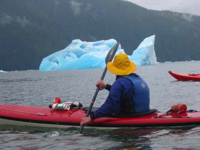 Joe Petolino in front of iceburgs at LeConte Bay