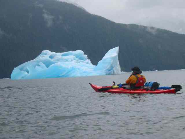 Don Fleming in front of iceburgs at LeConte Bay