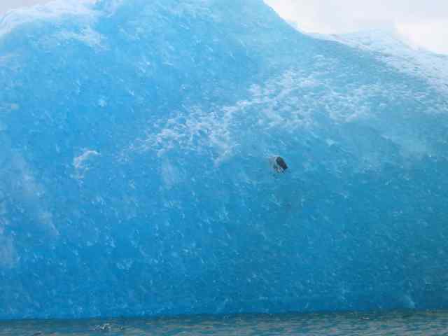 Rock in cyan blue iceburg in LeConte Bay