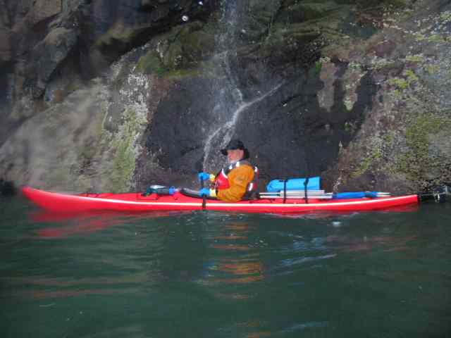 Don Fleming in front of small waterfall in Fredgrick Sound