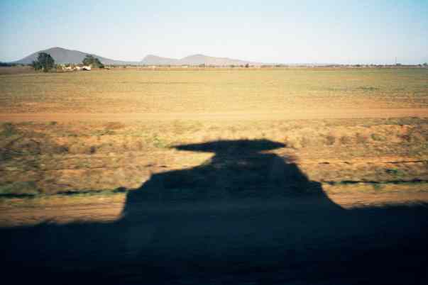 Shadow of the truck on the road