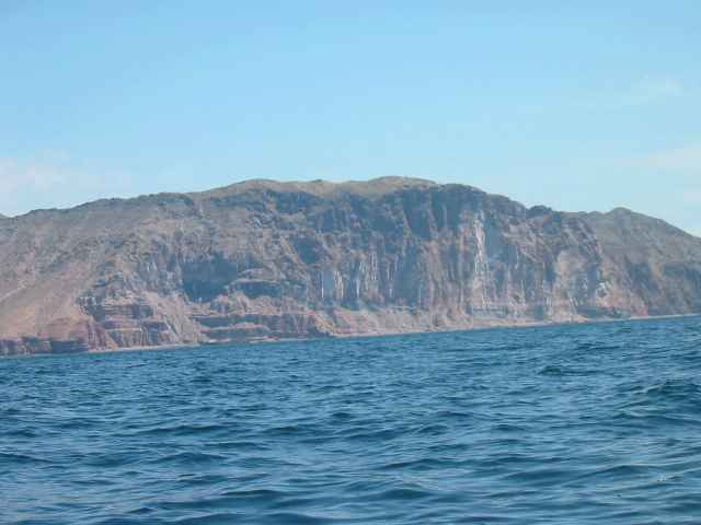 Vertical cliffs as we approach Isla Tiburon