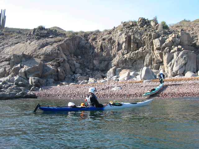 Dave Littlejohn and Roger Lamb landing on beautiful camping beach