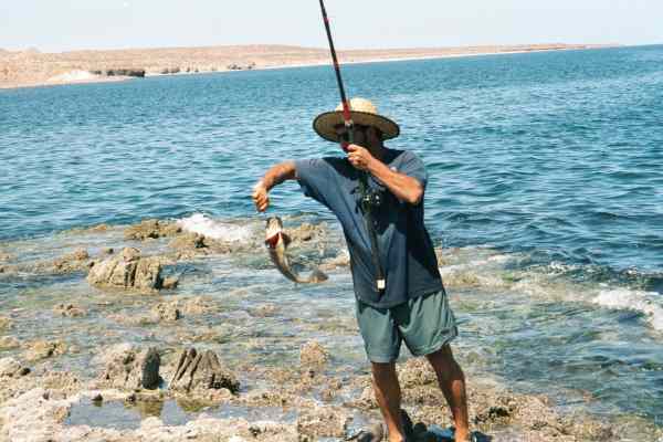John Barnett catching more fish at lunch stop beach