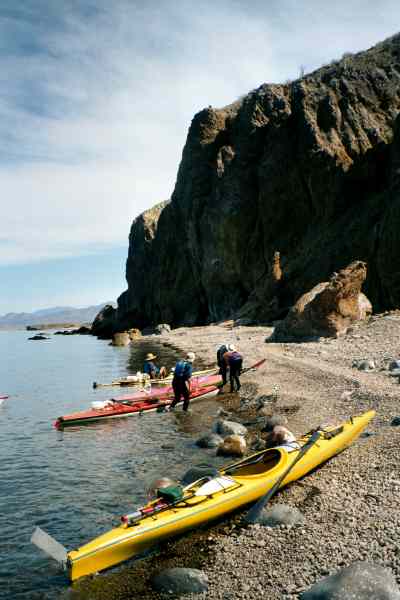 Kayaks landing for a break