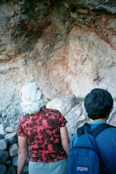 Penny Wells and Joe Petolino examining cave paintings